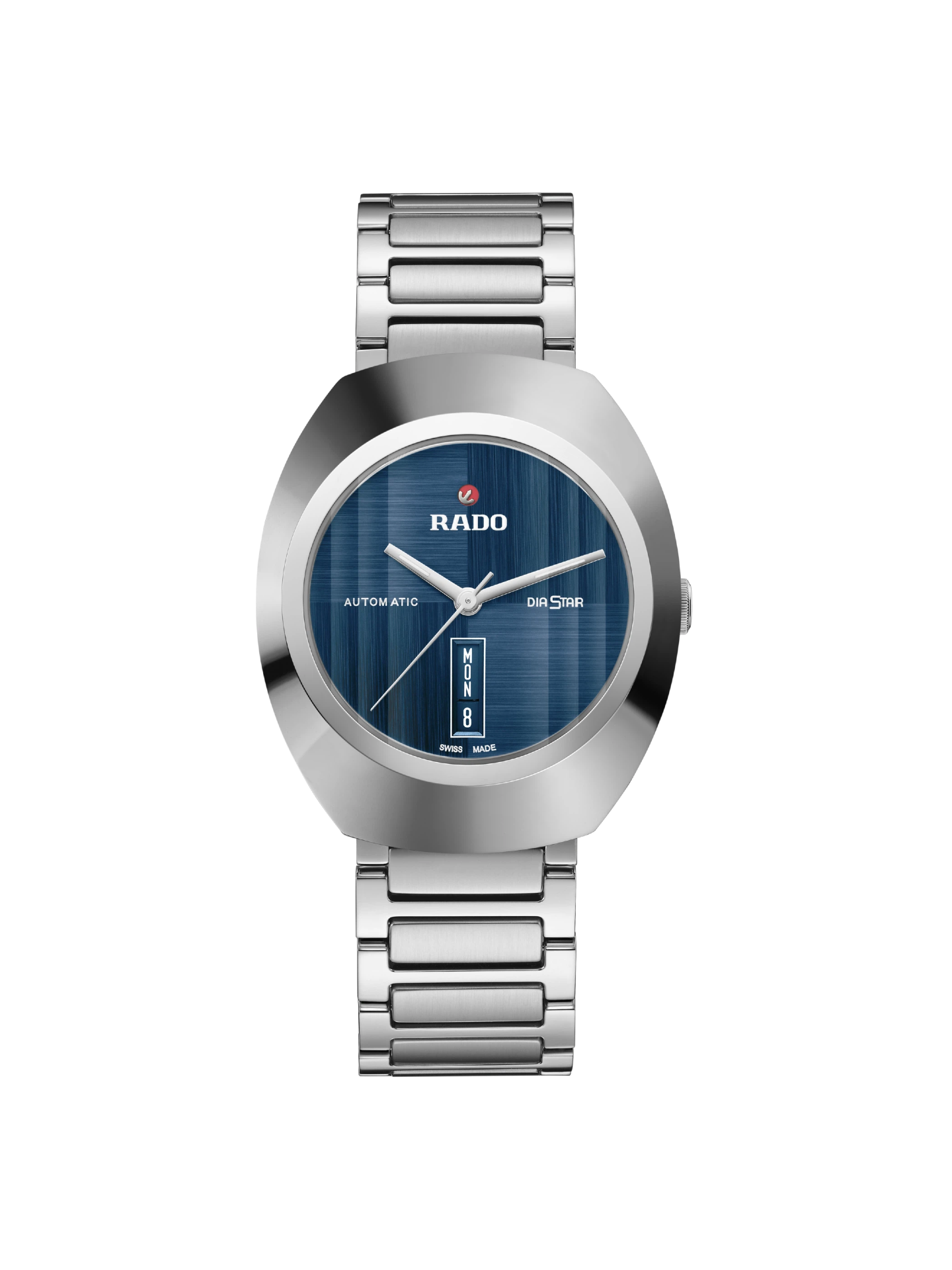 تتميز ساعة DiaStar Original الفريدة هذه بقطر 38 مم ومقاومة للماء حتى عمق 100 متر. تزدان الساعة بإطار من السيراميك سيراموس عالي اللمعان بلمسة نهائية مصقولة وحواف حادة وتفاصيل دقيقة، مما يُكمل علبة الساعة المصنوعة من الفولاذ المقاوم للصدأ أحادي اللون بشكل مثالي. ويُضفي زجاج الياقوت ذو القطع المتوازي لمسة من الأناقة. تأتي الساعة مزودة بميناء رمادي داكن مصقول مرتين، وعقارب مطلية بالروديوم (مغطاة بطبقة مضيئة بيضاء من Super-LumiNova)، ونافذة لعرض التاريخ بلون مطابق للميناء. وتحتوي الساعة في داخلها على حركة رادو R764 الأوتوماتيكية بتقنية Nivachron™ المضادة للمغناطيسية واحتياطي طاقة يصل إلى 80 ساعة. أما السوار فهو مصنوع من الفولاذ المقاوم للصدأ المصقول والمصقول بالفرشاة.